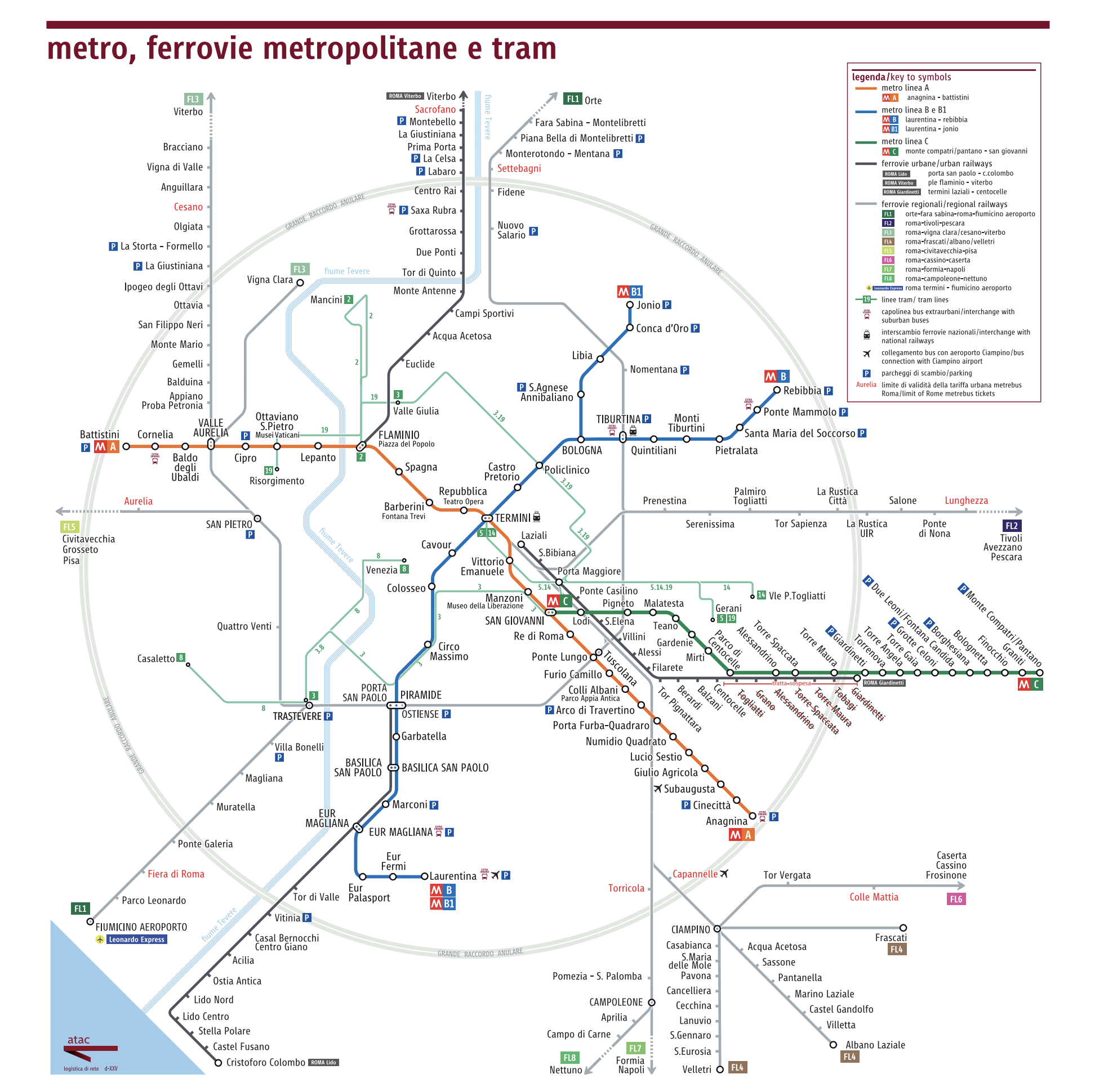 De metro maakt deel uit van het ATAC-netwerk, dat ook bussen, trams en een aantal regionale treinen omvat.